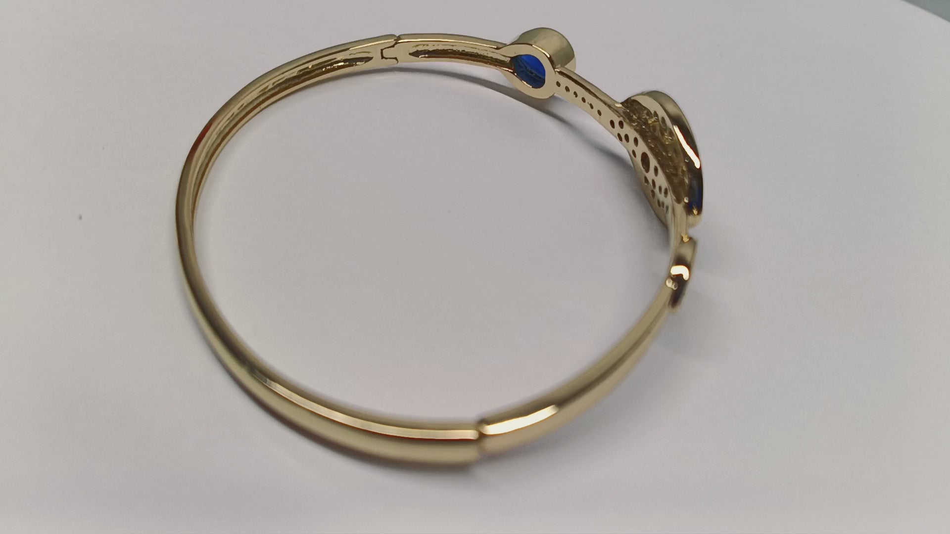 Oro Laminado Individual Bangle, Gold Filled Style Evil Eye Design, with White and Black Micro Pave, Polished, Golden Finish, 07.381.0010