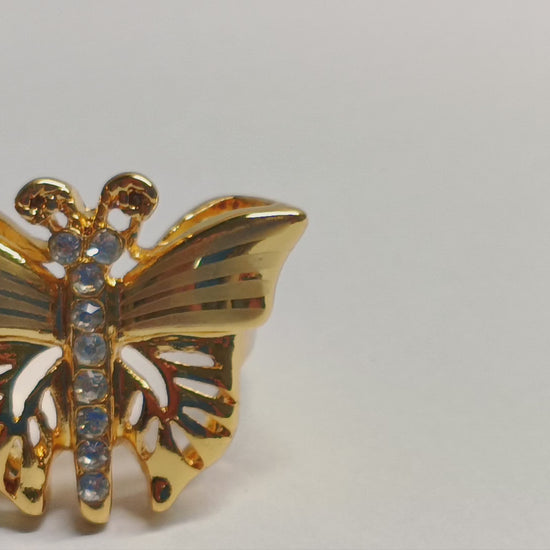 Oro Laminado Multi Stone Ring, Gold Filled Style Butterfly Design, with White Crystal, Polished, Golden Finish, 01.241.0017.08 (Size 8)