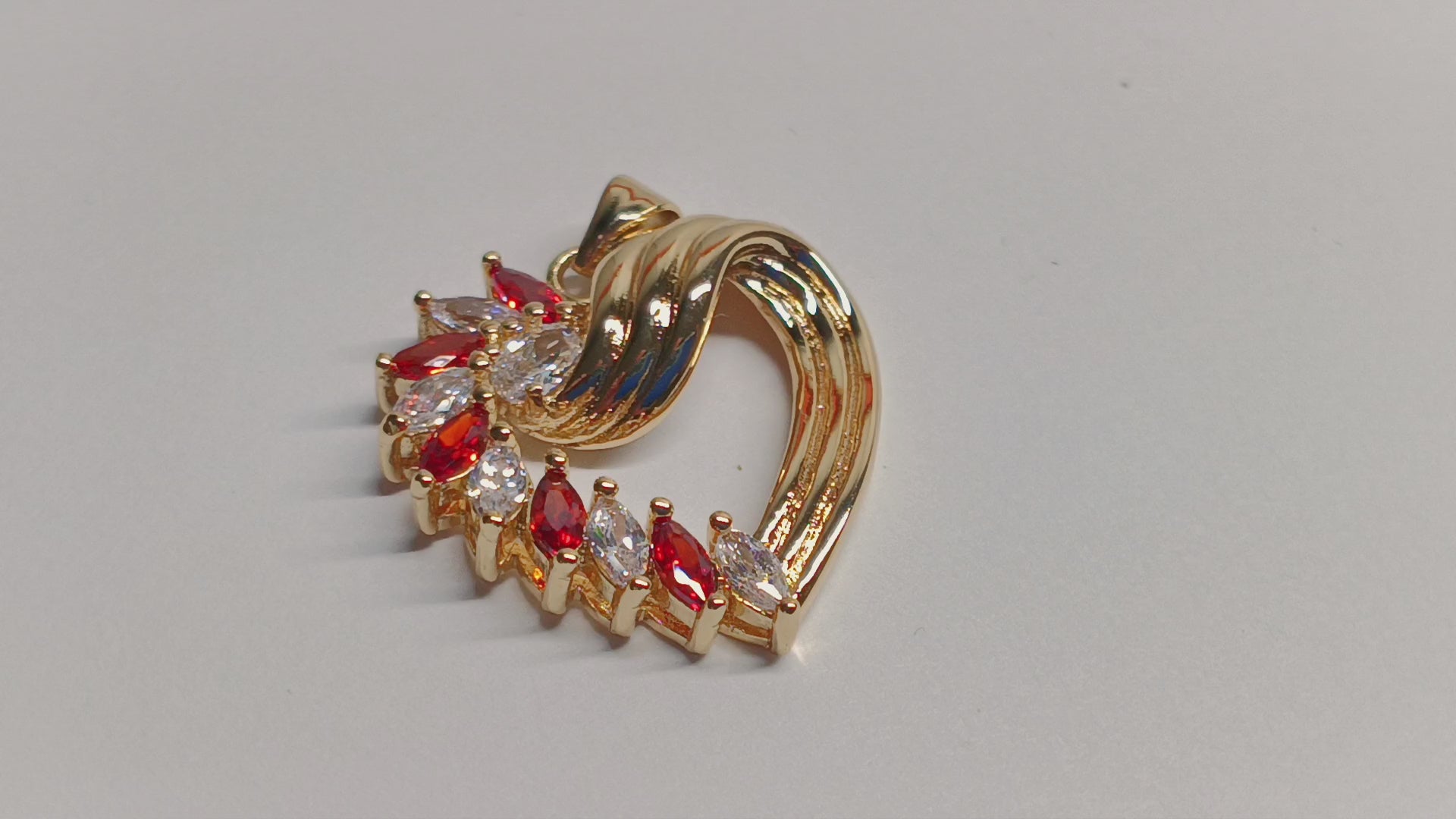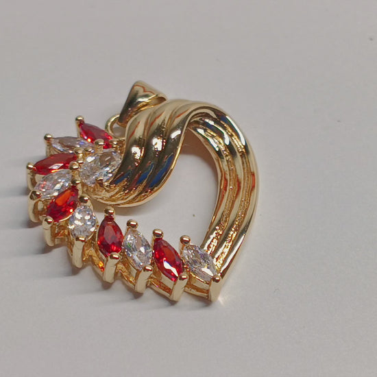 Oro Laminado Pendant Necklace, Gold Filled Style Heart Design, with Garnet and White Cubic Zirconia, Polished, Golden Finish, 04.213.0006.1.20 SKU: 135782